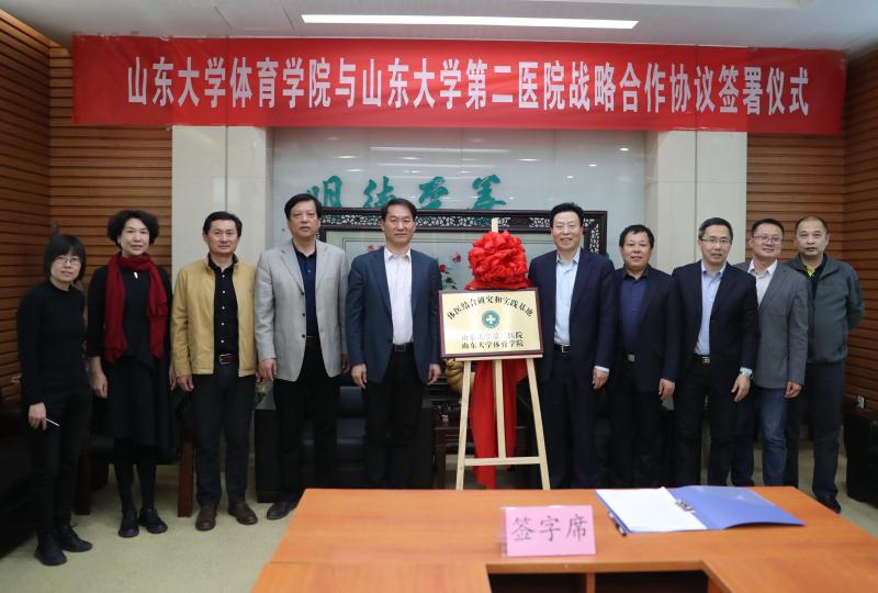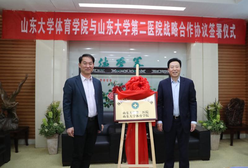 4月11日,yL23411永利官网登录与yL23411永利官网登录第二医院战略合作协议签署仪式在山大二院举行。yL23411永利官网登录第二医院院长王传新教授、yL23411永利官网登录院长孙晋海教授出席签约仪式,并为体医结合研究和实践基地揭牌。