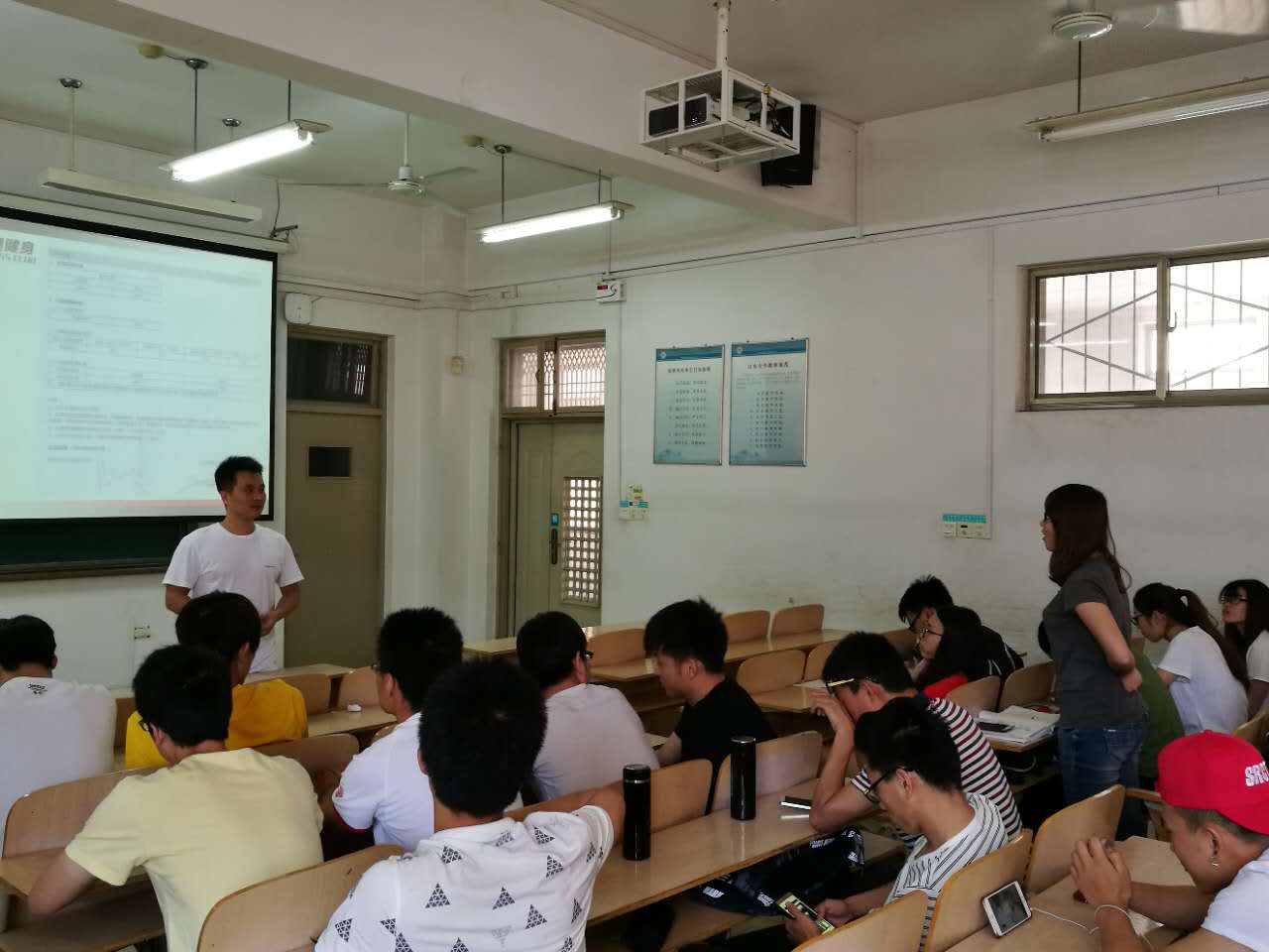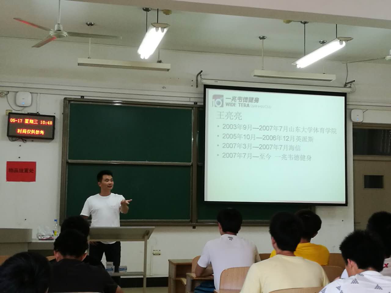 在17日的报告会中,王亮亮首先介绍了上海一兆韦德健身管理有限公司的发展历史、经营模式、未来规划,同时他详细地讲述了自己的求学经历和求职过程,还结合自身的工作经历向同学们传授了心得、经验,让同学们对未来求职更加自信。