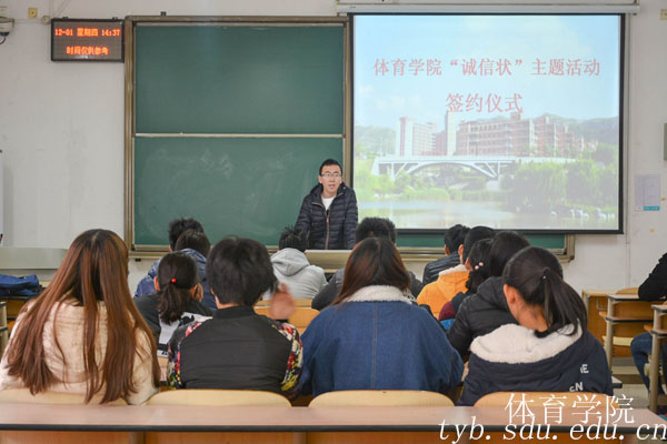 12月1日,为了响应学校号召,培养同学们的优秀习惯,督促同学们忙碌充实且有意义地度过每一天,yL23411永利官网登录学生会自律部在兴隆山校区举办“诚信状”主题教育活动签约仪式。辅导员范泽斌主持此次仪式。