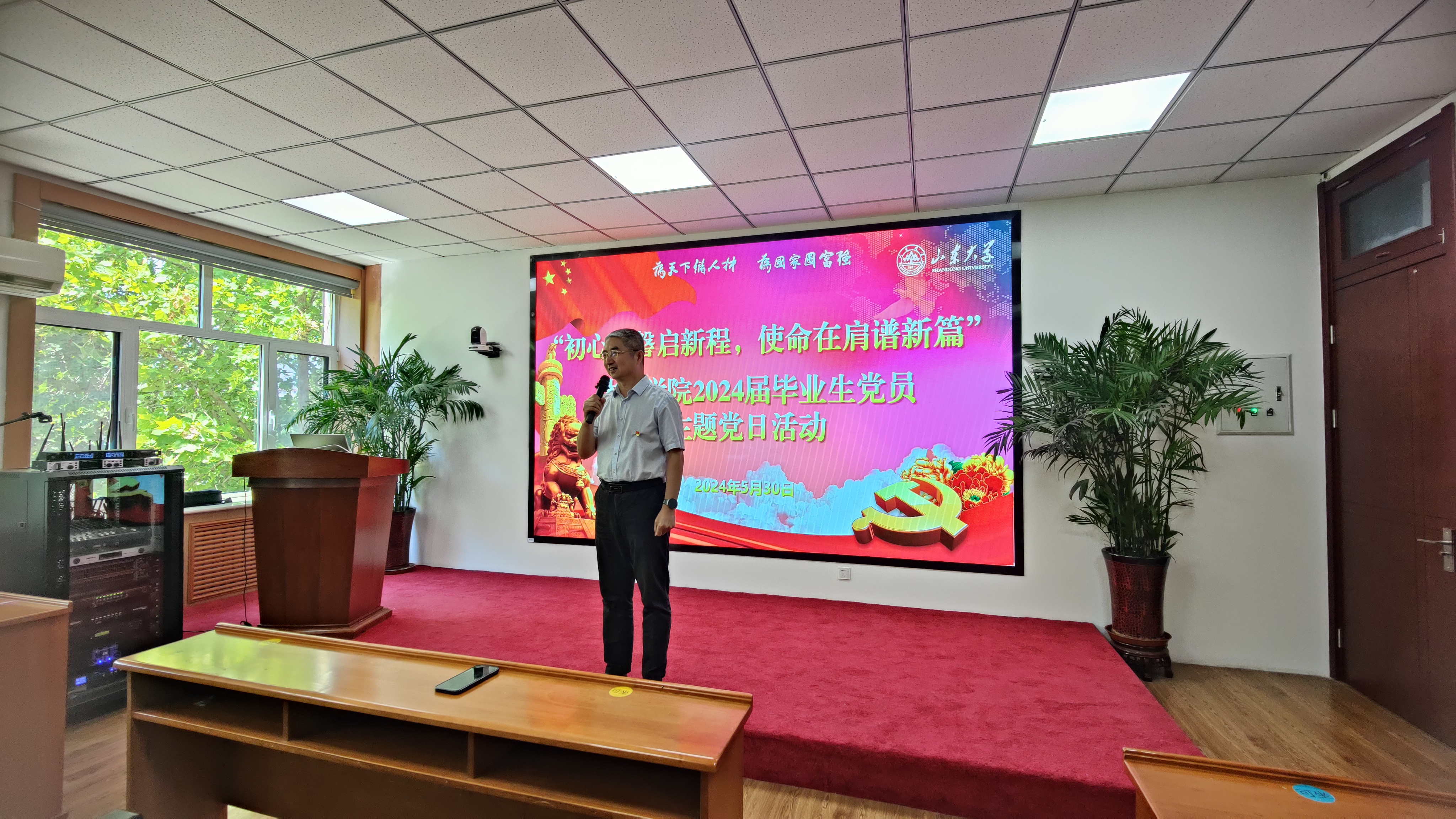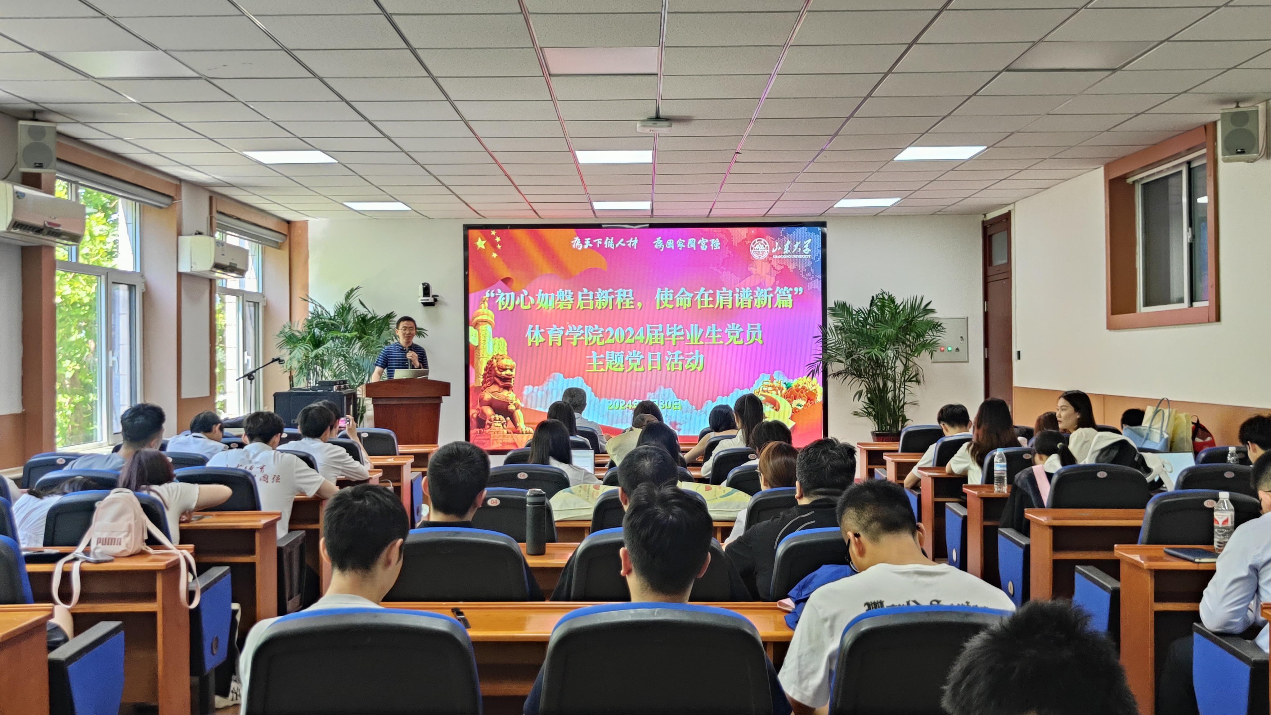 活动中,学院党委书记郭学庆为毕业生党员讲了一堂生动的党课,从国际、国家形势延伸到个人发展,为正处于人生重要选择阶段的毕业生党员指点迷津,同时为已经有了下一步规划的毕业生党员提出殷切希望。郭学庆首先肯定了同学们大学期间的成长与进步,他表示学校和学院的发展离不开每位党员的努力,希望大家能够进一步坚定理想信念,勤学善思,勇于实践,在未来的学习和工作中一展宏图;其次,他指出要传承红色基因,保持廉洁自律,争做无愧于祖国、无愧于人民的时代新人;三是要争做表率,在毕业生文明离校中站好最后一班岗,牢记山大体育人身份,传承山大精神,用实际行动诠释共产党员的优秀品质和模范作用。