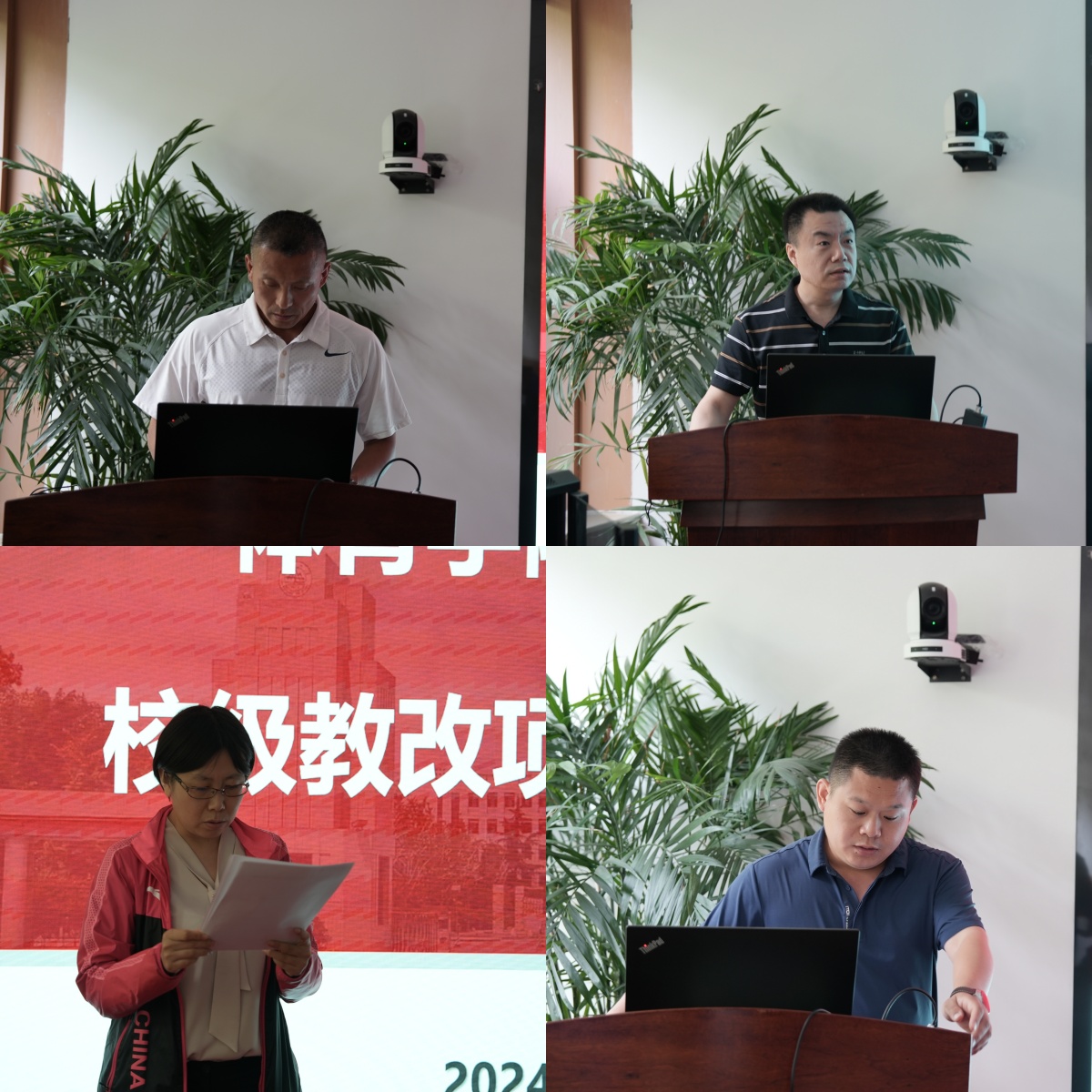 会上,刘强等七位项目负责人通过线上、线下相结合的方式分别对项目课程建设、研究进展、研究难点、阶段目标等进行了汇报与交流:“以引体向上为例‘教、练、赛融合’课内外一体化教学新模式的实践研究”旨在通过融合教学、练习和竞赛的方式,提升体育课程的教学效果和学生参与度;“基于增强现实武究术教学系统研发”将现代科技与中华武术传统技艺进行了结合,打破了传统武术教学的局限性;“数字技术赋能社体专业学生多元学业评价体系研究”研究了如何通过应用数字技术,改进和完善学业评价体系,以实现更加多元、客观和准确的评价;“基于OBE理念的公共体育网球课堂教学改革研究”探索了如何在高校公共体育网球课堂中有效应用成果导向教育(OBE)的理念,以提升教学质量和学生学习效果;“从经济学到体育经济学:原理、理论与应用”剖析了经济学在体育学领域的应用,探讨了体育经济学的基本原理、理论框架及其实践应用;“基于AI的大学生体质健康测试创新研究与实践”研究了如何运用人工智能技术来改进和优化大学生体质健康测试的过程和结果;“应用型社会体育专业人才培养产教融合机制与路径研究”探讨了如何构建和优化应用型社会体育专业人才培养的产教融合机制,以及实现这一目标的具体路径。