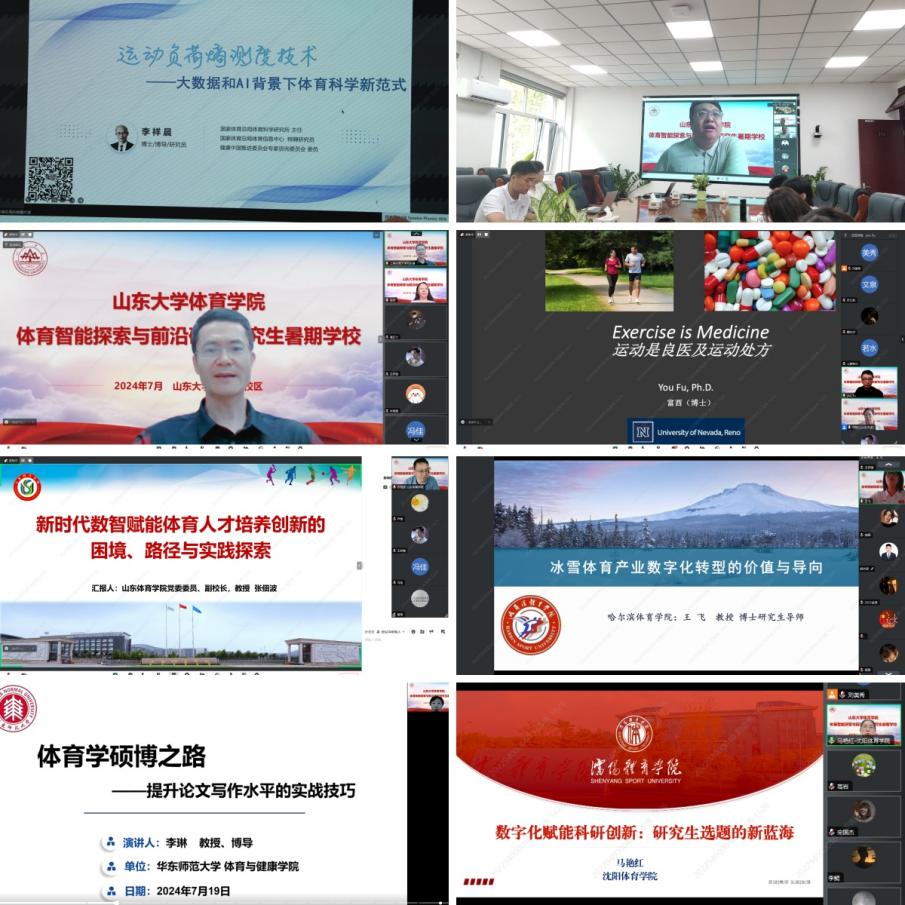 7月11日至7月20日,暑期学校邀请了多位海内外知名专家和学者进行学术讲座。针对高速发展的大数据、人工智能在体育领域的应用和发展,学院邀请国家体育总局体育科学研究所智慧体育创新研究中心主任李祥晨、上海体育大学研究生处处长刘东锋、哈尔滨yL23411永利官网登录体育人文社会学院院长王飞教授等作相关讲座;在人才培养方面,邀请山东yL23411永利官网登录党委委员、副校长张佃波作了《新时代数智赋能体育人才培养体系创新的作用机理、困境与实践探索》的报告;在论文写作方面,邀请华东师范大学体育与健康学院运动训练系主任李琳、沈阳yL23411永利官网登录学科发展规划处、研究生处处长马艳红和吉林yL23411永利官网登录优秀校友、副教授李凌等从选题、写作和研究方法方面做系统性报告;在海外师资方面,邀请运动健康领域专家、内华达大学公共卫生学院教授富酉博士作《慢性病运动处方的发展和趋势》的报告。