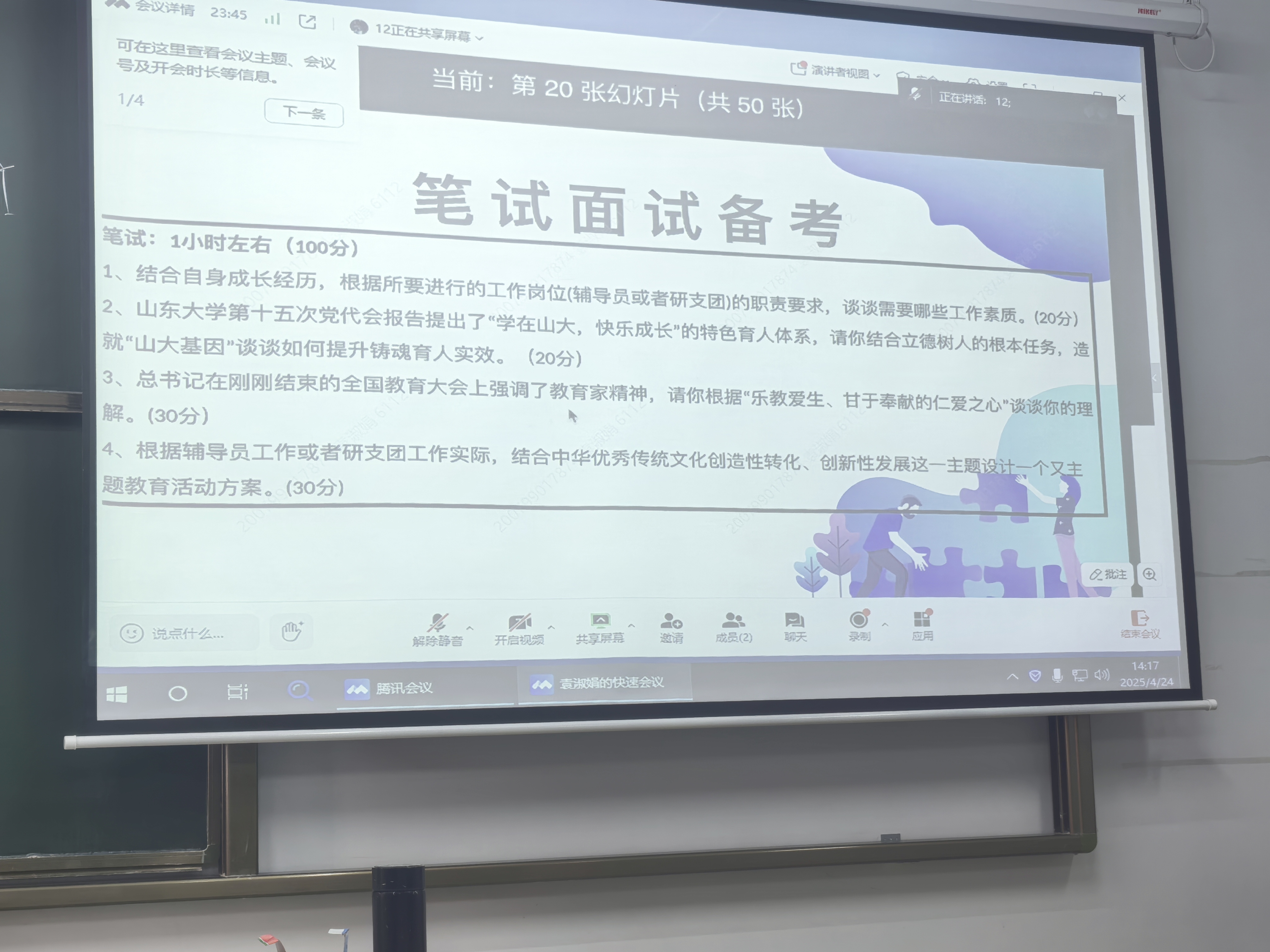 作为2022级本科生的辅导员,袁淑娟老师不仅是同学们的引路人,更是大家成长路上的贴心陪伴者。她以丰富的经验和敏锐的洞察力,为同学们梳理了人生的多种可能。从就业、保研、考研到考公,袁老师详细分析了每一条道路的特点和选择依据,让同学们对未来有了更清晰的认识。袁老师指出,人生并非只有一条路可走,每一条道路都有其独特的风景和价值。她鼓励同学们根据自己的兴趣、能力和目标,做出最适合自己的选择。她提醒大家,无论选择哪条路,都要相信自己,坚定信念,努力前行。她鼓励同学们勇敢地去尝试,去体验,去创造属于自己的精彩。无论选择支教保研、考研深造,还是考公上岸,都要珍惜每一个机会,努力实现自己的价值。