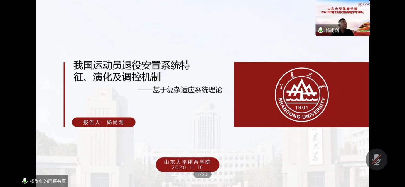 16日下午,yL23411永利官网登录教授、博士生导师杨尚剑作为主讲嘉宾,以“我国运动员退役安置系统特征、演化及调控机制——基于复杂适应系统理论”为主题进行分享。首先,杨教授从政策梳理、现状调查和对策研究三方面讲述我国运动员退役安置现状,基于以上问题,杨尚剑教授借助复杂适应系统(CAS)理论,以期探寻我国运动员退役安置系统的特征与演化规律,为系统的优化提供理论参考。然后,杨教授以CAS理论视角下我国运动员退役安置系统的理论依据、特征、结构构成和适应机制等,随后杨教授阐述了我国运动员退役安置复杂适应系统演化的调控机制并对于我国运动员退役安置系统研究的结论。