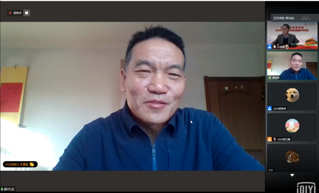 4日上午,北京大学教授、博士生导师,中国高等教育学会体育专业委员会常务理事兼监事、教育部全国高等学校体育教学指导委员会公体组副组长、北京大学体育科学研究所所长郝光安教授就“健康与人格培养相融,普及与提高并重”的主题进行专题讲座。内容包括五个方面:第一,从研究者的角度出发,带领同学们梳理相关文件来寻找体育领域方面的机遇;第二,从自身经验对各位老师和同学们可能会遇到的挑战进行讲解;第三,采用案例分析的方法讲述关于实际情况下可能出现的安全问题;第四,和同学们对于相关精神、文件进行激烈的讨论;最后,带领同学们一起对出现的问题进行解惑。
