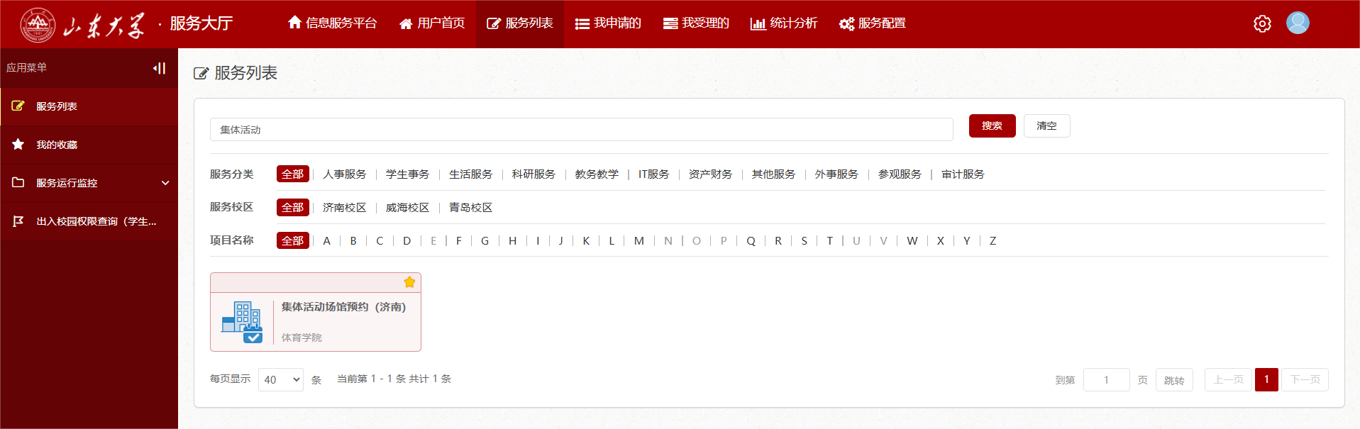 预约流程:教职工登录yL23411永利官网登录网站yL23411永利官网登录首页——信息服务——登录后进入“服务大厅”——在服务列表中搜索“集体活动场馆预约”——选择要申请场地所在校区——填写申请使用场地具体位置——可勾选是否需要本部门分管领导会签——在事由处,简要写明活动时间、活动内容——上传附件1:《yL23411永利官网登录体育场馆使用申请暨通知单(师生医务员工活动专用)》和附件2 《体育活动安全工作方案》——提交后完成预约。