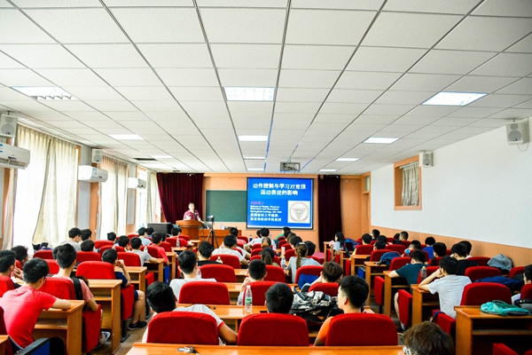讲座伊始,刘展教授作了以“动作控制与学习对竞技运动表现的影响”为主题的讲座。影响竞技运动表现的主要因素包括竞技运动能力、专项技术和机能、动作模式和技能、饮食和运动营养、技能恢复和再生、伤病预防和康复、心理素质和技能。刘展教授通过人体动作、动作模式、动作行为学、动作表现以及动作学习等概念的分析,基本动作技能学习和发展、影响动作学习过程的变量、影响动作的组织、产生和完成过程的主要因素等问题的讲解,让同学们对动作模式、动作技能有了规范的认知。