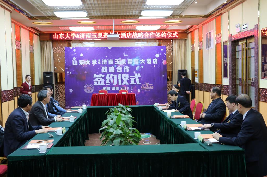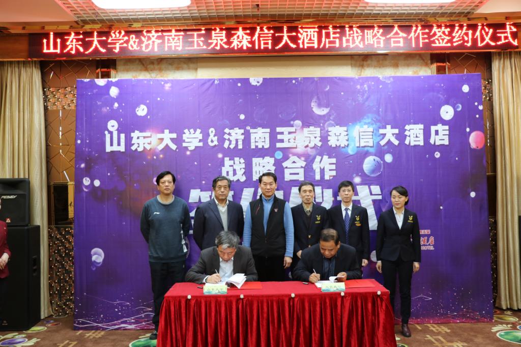 济南玉泉森信大酒店是我国首家乒乓文化主题酒店,建店20多年以来,在中国酒店行业中独树一帜,先后荣获“中国金叶级绿色饭店”“中国乒乓之家”等荣誉称号,同时是“yL23411永利官网登录乒乓球运动训练基地”。本次双方本着自愿、平等、诚信、共赢的原则,在前期良好合作的基础上,充分发挥校企双方各自优秀资源的优势,在科学研究、大学生乒乓球赛事、学术论坛、学生实习实践等方面进行全面深度合作。