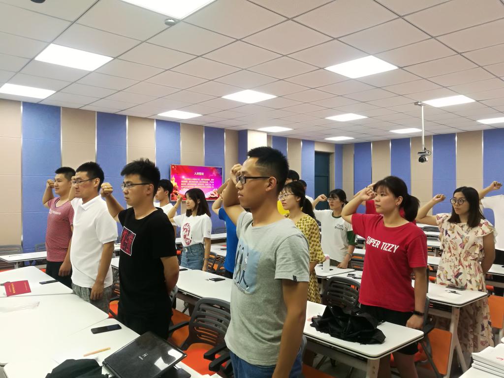 最后,范泽斌带领全体党员在党旗面前重温入党誓词。