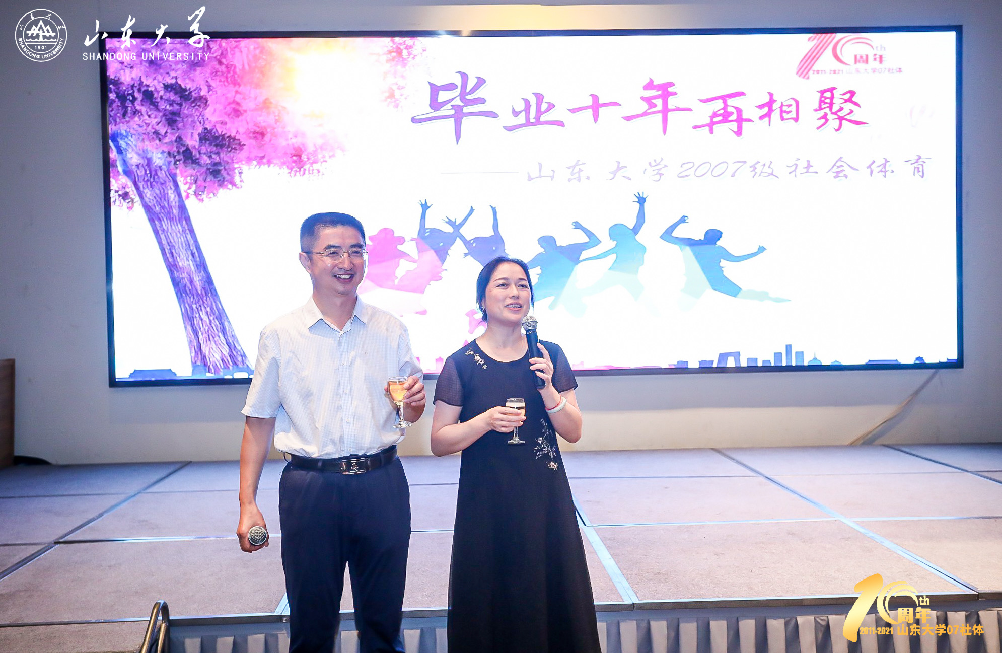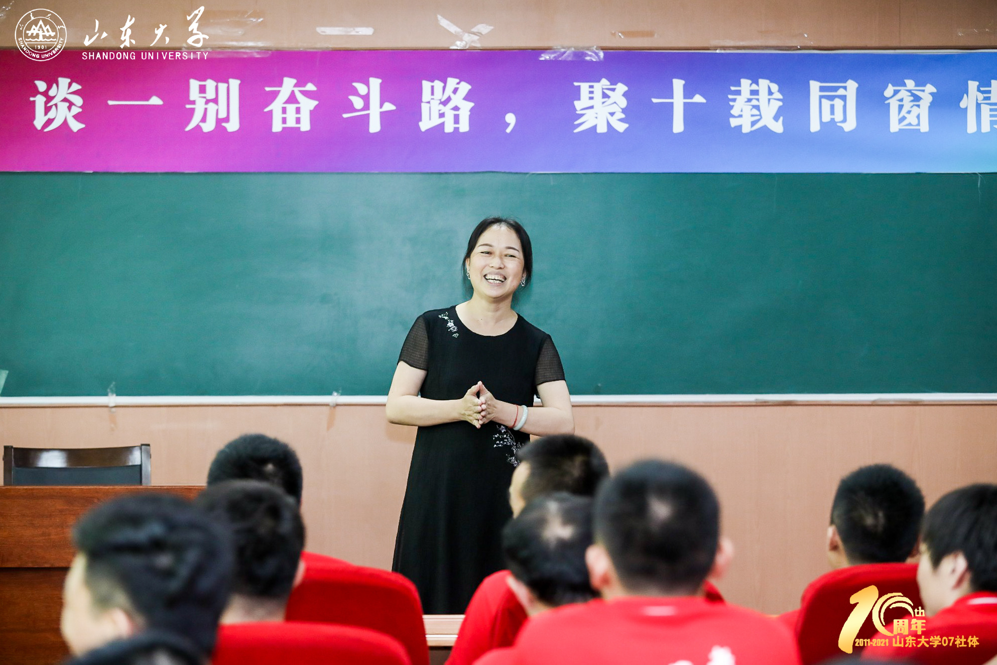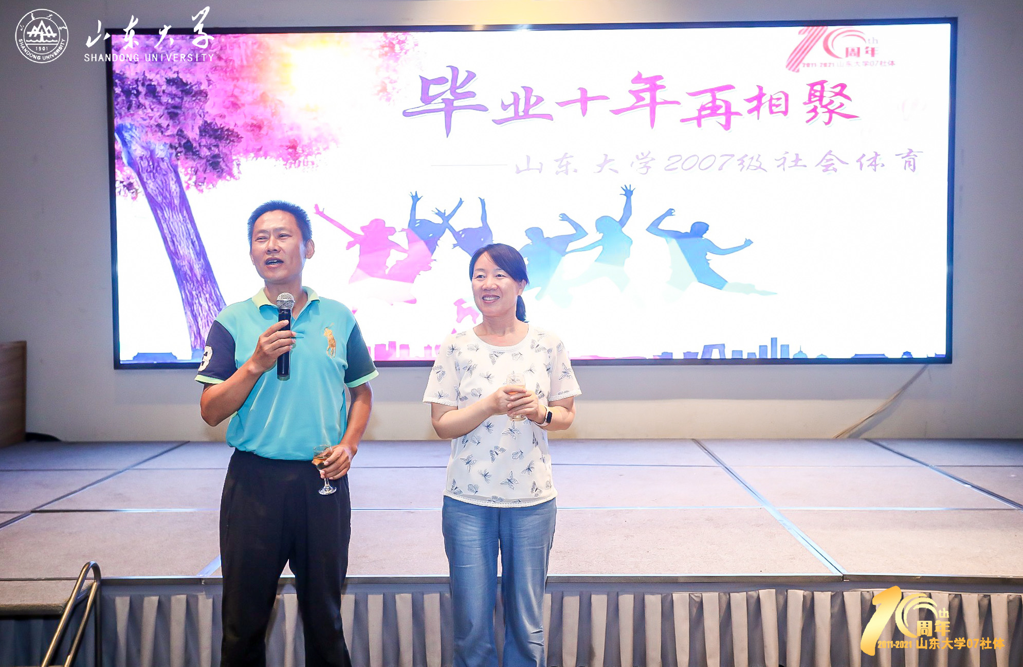 校友主题班会由2007级社体四年的辅导员袁淑娟主持,袁老师对各位校友荣归母校表示热烈欢迎。返校校友们依次发表了“十年感言”,就自己现在的工作、生活情况向老师和同学们作了汇报。大家纷纷表示,是yL23411永利官网登录把大家从全国各地汇聚在一起,组成了这个大家庭。四年的学习生活,收获了知识,也收获了友情。美好的大学生活是每位07社体同学终生难忘的记忆。班会最后袁老师提出,山大体育人,聚是一团火,散是满天星,为07社体校友们送出了最为真挚的祝福。