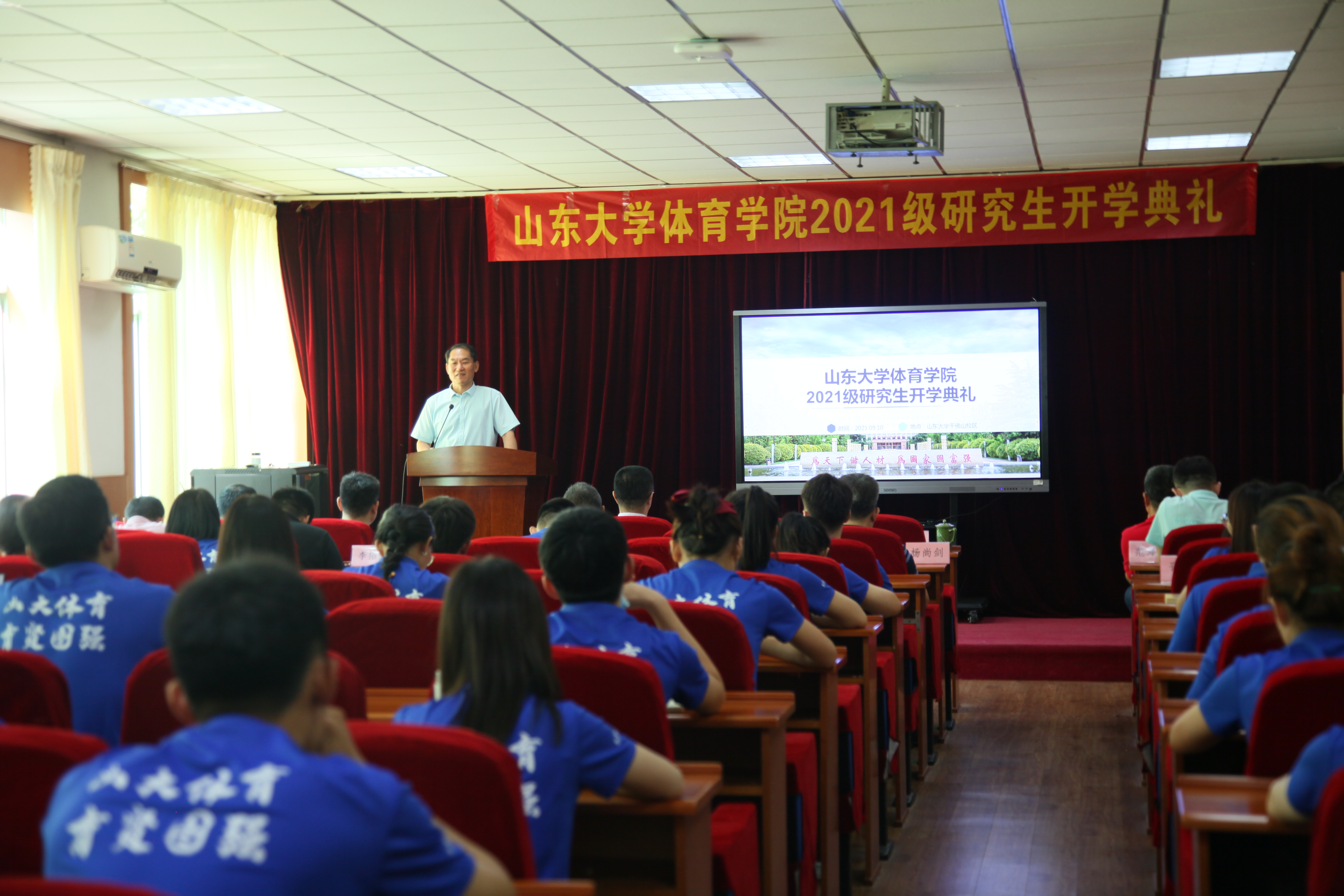 9月10日上午,yL23411永利官网登录2021级研究生开学典礼暨新生开学第一课在千佛山校区三楼报告厅举行。yL23411永利官网登录党委书记、院长孙晋海,党委常务副书记郭学庆,党委副书记周庆华,副院长石振国、王飞、王先亮,团委书记范泽斌,研究生秘书兼班主任崔莉莉以及导师代表,2021级全体研究生参加了开学典礼。典礼由周庆华主持。