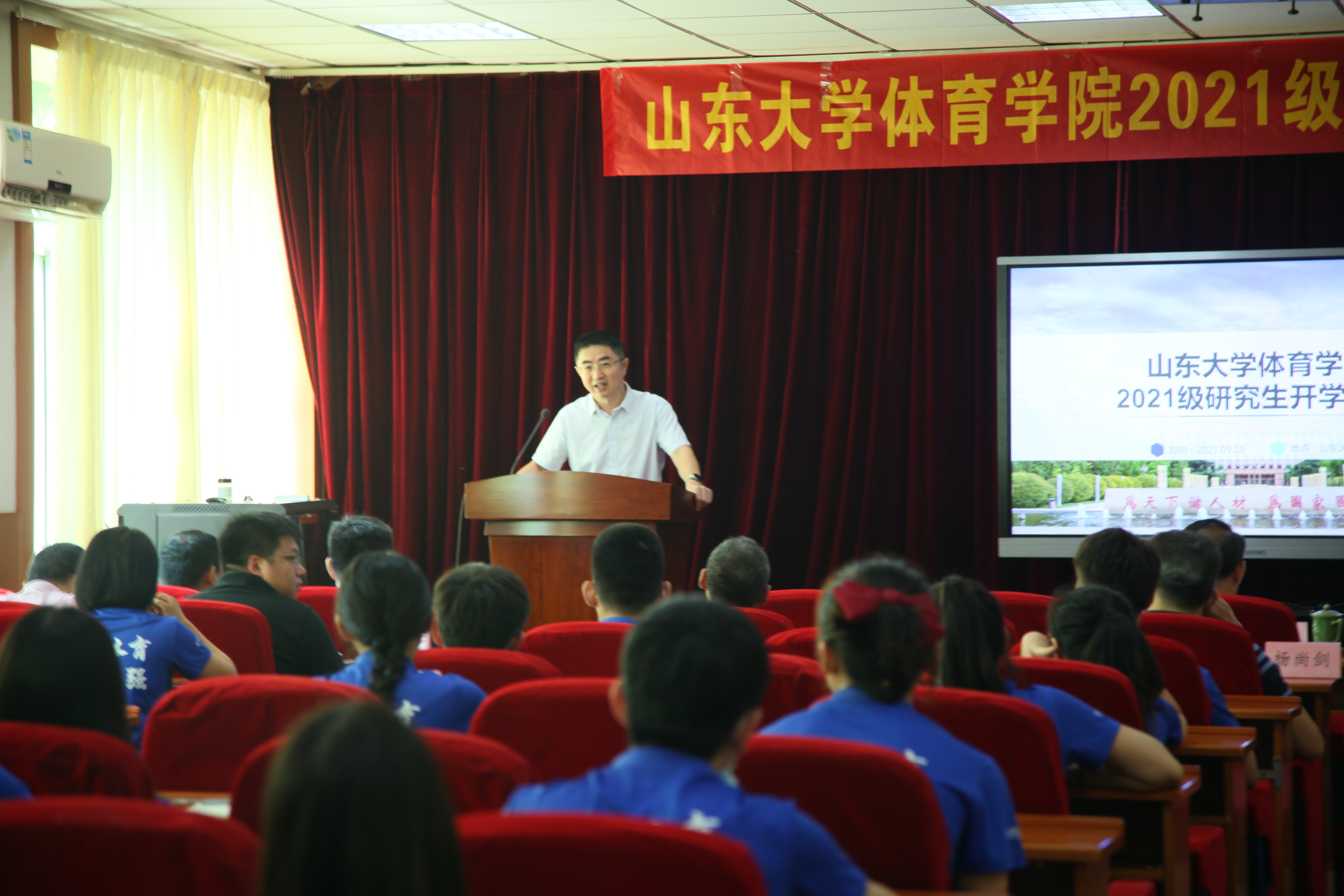 孙晋海致欢迎辞。他代表学院热烈欢迎和由衷祝贺2021级研究生新生的到来,向同学们介绍了yL23411永利官网登录和yL23411永利官网登录发展的基本情况以及近年来学院在高水平人才、科研和实验平台等方面取得的各项成绩。在国家大力推动新文科建设背景下,我校体育学与医学、心理学、人工智能等成熟学科交叉融合,实现跨学科发展。2021年正值yL23411永利官网登录成立120周年,学校、学院学科发展突飞猛进,他勉励同学们应珍惜机会,严格要求自己,利用好平台,使自己成为一名富有创作力的优秀研究生。最后,孙院长对新生提出要求,希望同学们能够遵守学校、学院的规章制度,积极参加学术活动,加强我院的学风建设,期待同学们收获丰硕的成果。