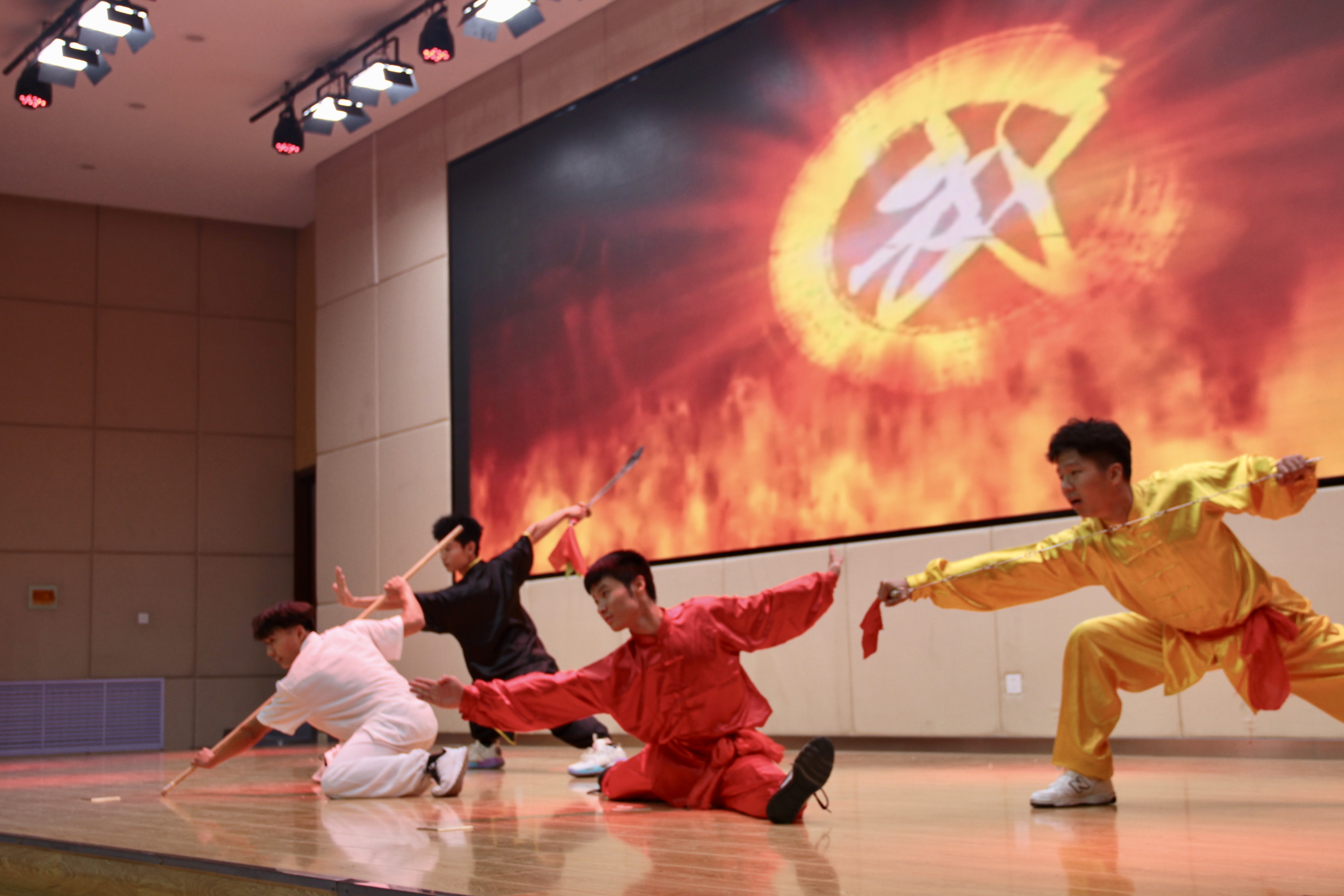 由2021级社体武术的同学们为大家带来了武术表演,《武动乾坤》,舞台上同学潇洒的动作,精彩展示不由得令人佩服,展示出了大一学子们的昂扬活力的精神面貌。