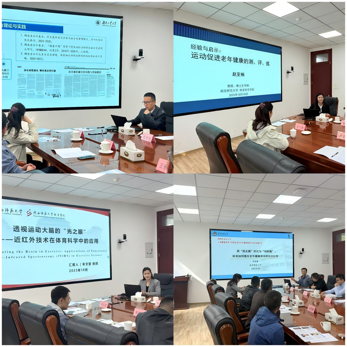 陕西师范大学朱文斐教授作了题为“透视运动大脑的“光之眼”—近红外技术在体育科学中的应用”的学术报告,朱文斐教授长期关注运动干预改善老年人群认知功能研究领域,以Switch掌机体感游戏为媒介进行干预训练,使用近红外技术监测老年人在执行N-back任务和Stroop任务时前额叶皮层的血氧浓度变化,在基于体感游戏的运动干预改善老年人群认知功能领域取得系列成果。