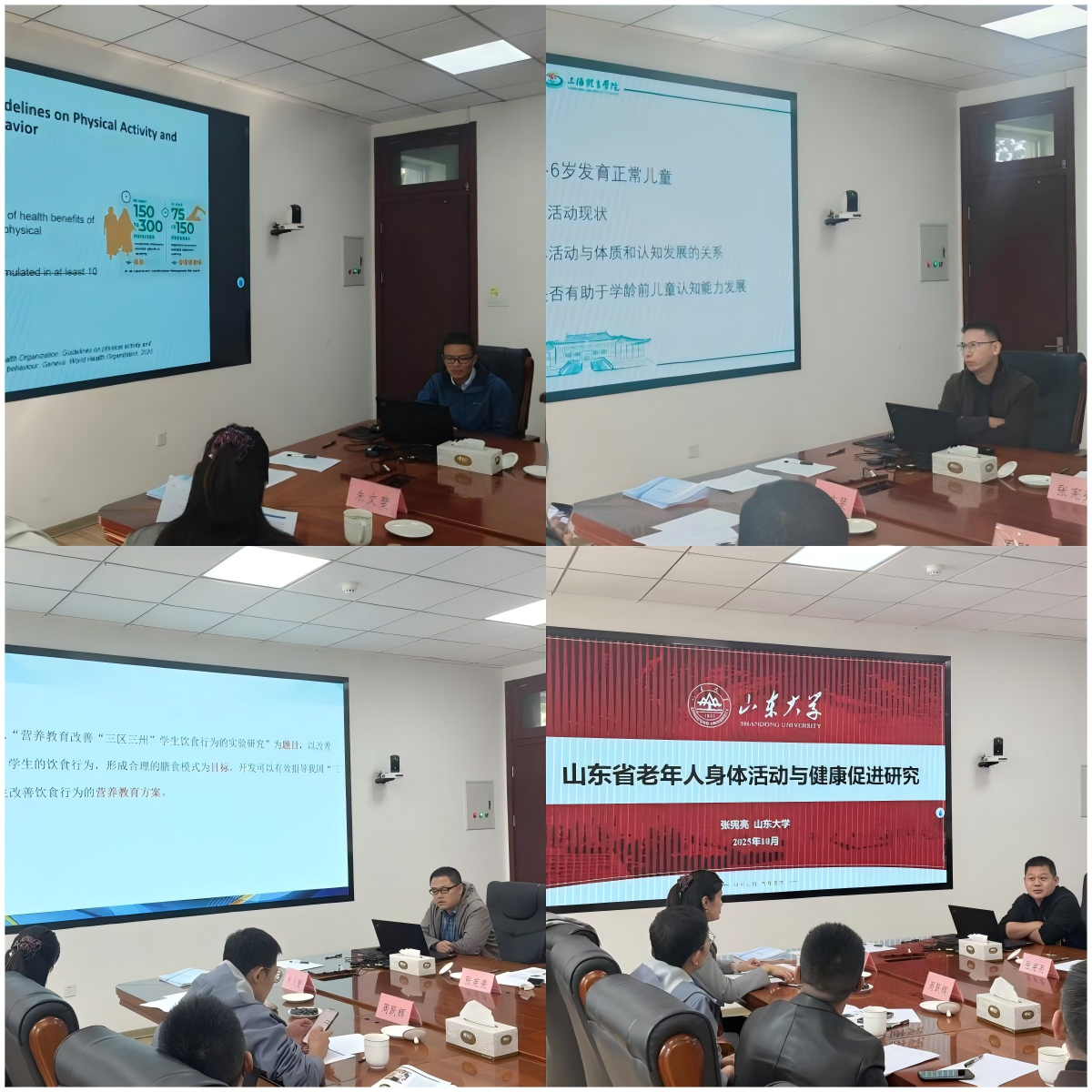 最后张宪亮副教授作了题为“山东省老年人身体活动与健康促进研究”的报告,详细介绍了yL23411永利官网登录运动与健康研究团队近期研究成果,以及目前开展的课题研究项目。受邀专家对于团队未来发展提出了诸多宝贵意见,并探讨了下一步建立全国性身体活动调查队列的可能性和可行性,提出了构建身体活动与老年健康促进学术共同体的愿景。