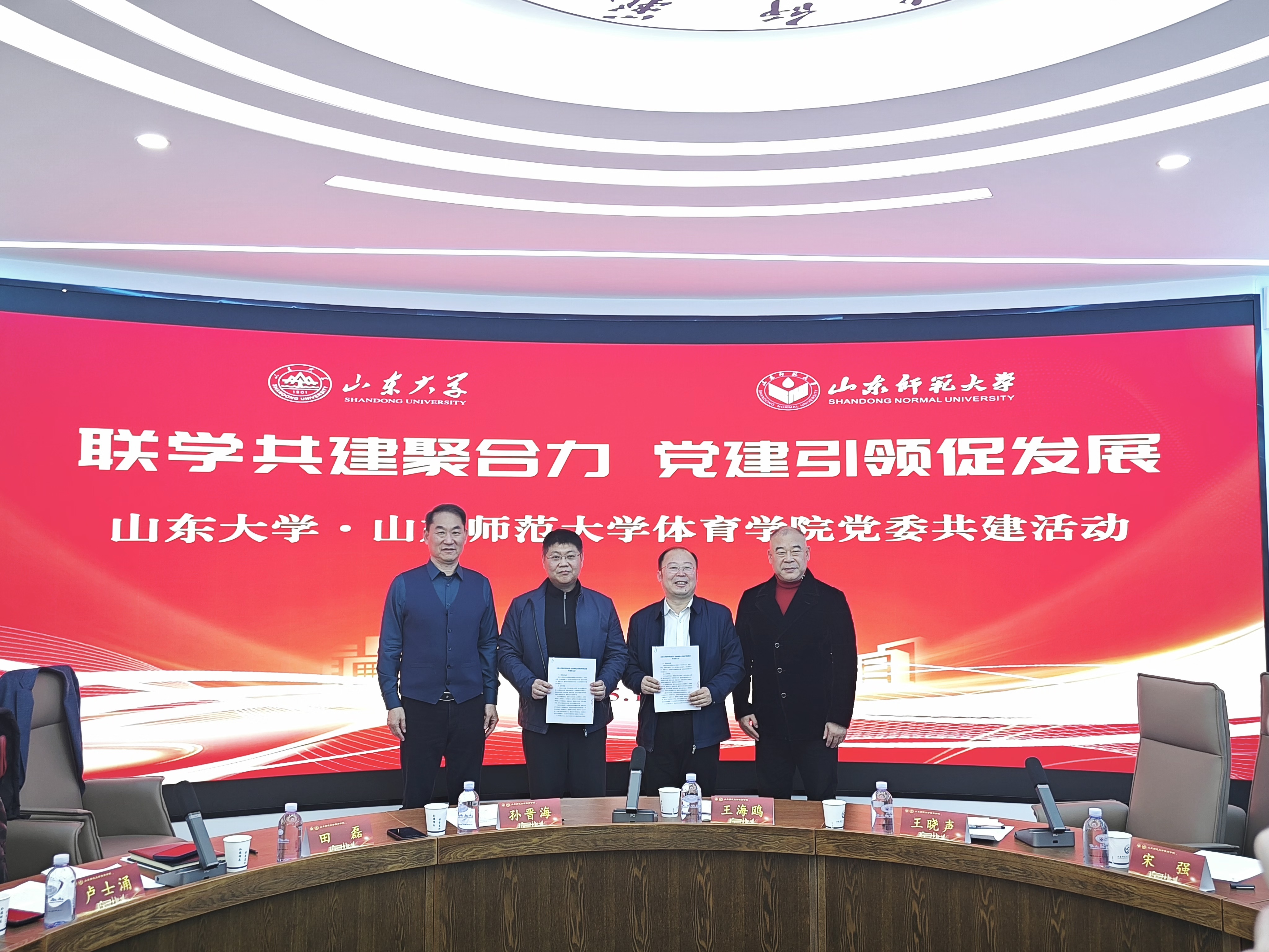 活动中,双方党委理论学习中心组成员一起学习了近日教育部、国家发展改革委、财政部、人力资源社会保障部、体育总局等五部门联合发布的《关于实施学生体质强健计划的意见》,就围绕如何深入贯彻落实习近平总书记关于教育、体育的重要论述和全国教育大会精神、深化学校体育综合改革、强健学生体质和促进身心健康等开展研讨交流。yL23411永利官网登录党委书记田磊、山东师范大学yL23411永利官网登录党委书记王晓声共同签署共建备忘录,分别介绍了加强基层党建工作的经验做法,就未来双方聚焦体育强国、健康中国战略,务实开展联学共建、服务山东教育、推动科研合作、深化联合育人等方面合作进行展望。