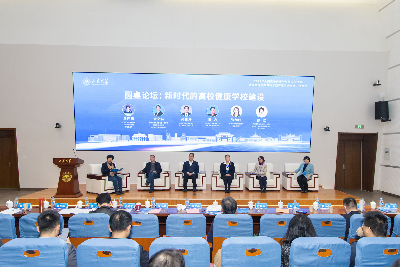 圆桌论坛环节,廖文科、孙晋海、河南科技大学医学部主任雷方、西南石油大学医院院长张继红、天津医科大学公共卫生学院儿少卫生与妇幼保健学系主任张欣共同围绕“新时代的高校健康学校建设”主题展开深入对话,北京大学儿童青少年卫生研究所教授马迎华主持活动。