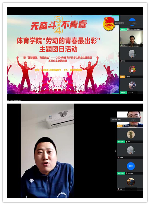 5月4日下午,yL23411永利官网登录团委通过腾讯会议线上直播的形式,举行了以“劳动的青春最出彩”为专题的五四青年节主题团日活动。此活动也是“强智健体,育贤启航”2020年yL23411永利官网登录学生职业生涯规划系列分享会的第四期。活动邀请了薛钊和刘永生两名优秀校友作为分享嘉宾,yL23411永利官网登录党委常务副书记郭学庆、党委副书记周庆华、团委书记范泽斌等领导老师参加本次活动。活动由学院学生会副主席、2017级本科生吴优主持。