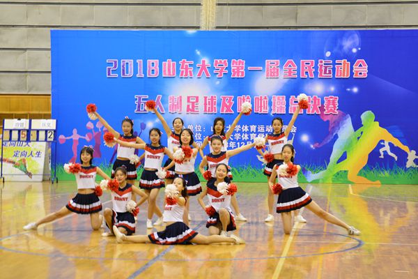 啦啦操总决赛与足球比赛穿插进行。参加总决赛的队伍分别是济南校区的数学学院、管理学院、软件学院、外国语学院、艺术学院、国际教育学院等6支代表队,威海校区的翻译学院和海洋学院等2支代表队。最终,软件学院和翻译学院荣获一等奖。