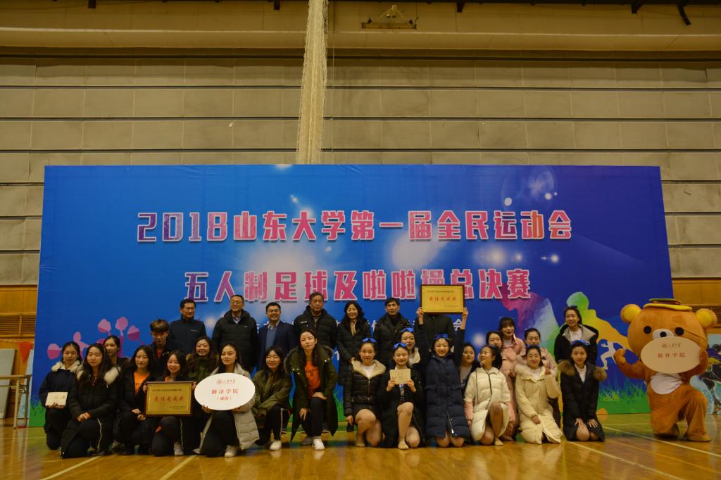 12月7日至9日,2018yL23411永利官网登录第一届全民运动会五人制足球及啦啦操总决赛在趵突泉校区体育馆举行。本次比赛由yL23411永利官网登录体育委员会主办、yL23411永利官网登录承办,闭幕式由yL23411永利官网登录副院长徐剑波主持,威海校区体育教学部主任张颖致闭幕词,威海校区体育教学部党总支书记叶军堂,yL23411永利官网登录正处级组织员任若强,党委副书记周庆华,威海校区翻译学院党委副书记常伟东等领导出席闭幕式并为获胜队伍颁发奖状证书。分别在济南、青岛、威海校区初赛中胜出的10支足球队以及8支啦啦操代表队参加了为期三天的总决赛。