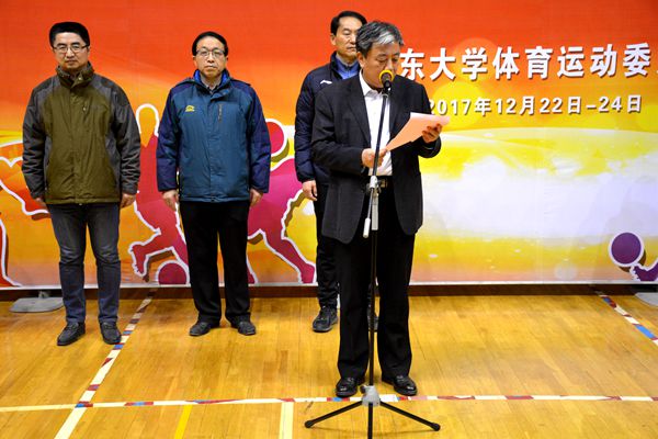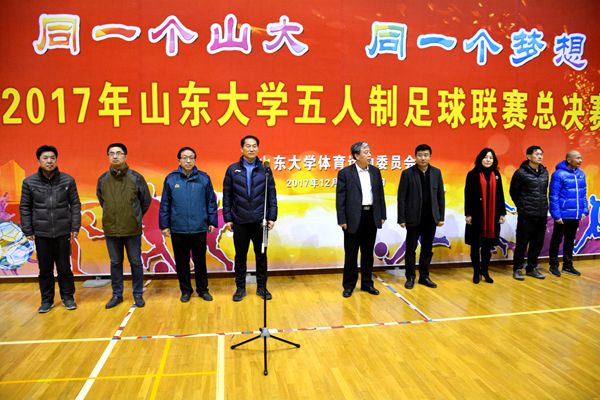 12月22日,yL23411永利官网登录五人制足球联赛总决赛开幕式及揭幕战在趵突泉校区体育馆举办。本届五人制足球联赛由yL23411永利官网登录体育委员会主办,是学校首次在济南、威海、青岛三个赛区同时展开的体育联赛。yL23411永利官网登录党委副书记仝兴华出席开幕式并致辞。来自学校济南赛区的yL23411永利官网登录、机械工程学院、管理学院、历史文化学院,威海赛区的数学与统计学院、空间科学与物理学院,青岛校区的法学院、政治学与公共管理学院共8支优胜队参加了本次开幕式。齐鲁医学院、威海校区体育部、学校公安处以及yL23411永利官网登录有关领导参加了开幕式。开幕仪式由yL23411永利官网登录党委书记任若强主持。