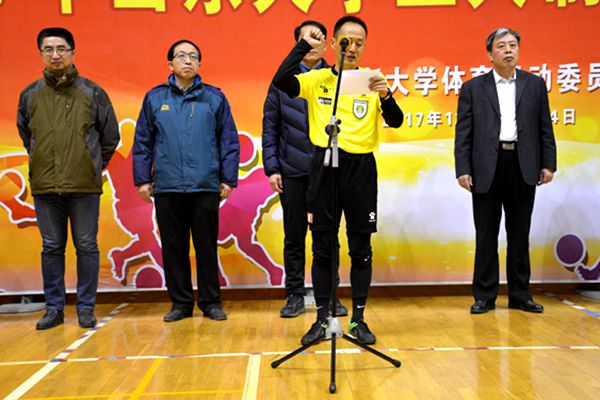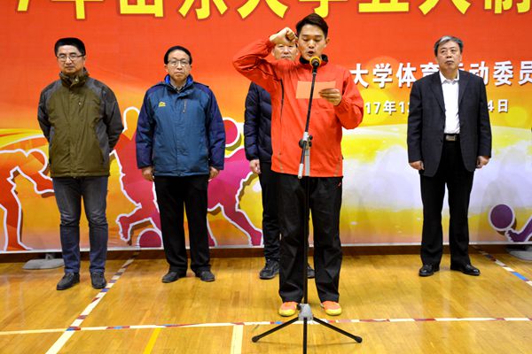 开幕式伊始,仝兴华进行致辞,他表示本次活动积极响应习近平总书记在党的十九大报告中提到的要“广泛开展全民健身活动,加速推进体育强国建设”的观点,强调“青年兴则国家兴,青年强则国家强”,他说学校体育工作就是要聚焦聚力“促进学生身心健康、提升学生体质健康水培养学生健全人格”。接着,yL23411永利官网登录2015级学生刘德健代表全体参赛队员宣誓,他表示在比赛过程中一定尊重对手,尊重队友,尊重裁判,尽全力比赛,展示优良竞技风貌。裁判员肖扬代表全体裁判员宣誓,他表示在比赛过程中一定尊重参赛选手,严格执裁、文明执裁,以良好的道德风尚和专业的裁判素质,确保比赛顺利进行。宣誓完毕后,仝兴华同志宣布比赛正式开始。