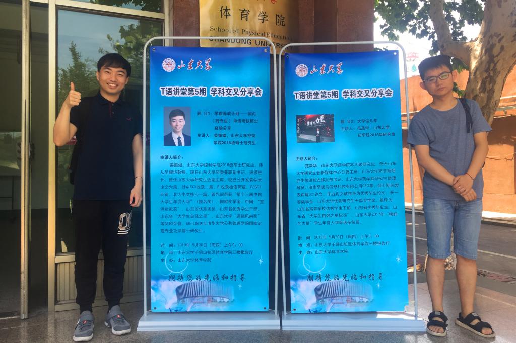 5月30日,yL23411永利官网登录于千佛山校区开展T语讲堂第五期活动。本期讲座的主题为“学科交叉分享”,邀请了控制学院2016级硕士研究生姜振煜、药学院2016级硕士研究生范晟华作报告。yL23411永利官网登录全体研究生参加讲座。