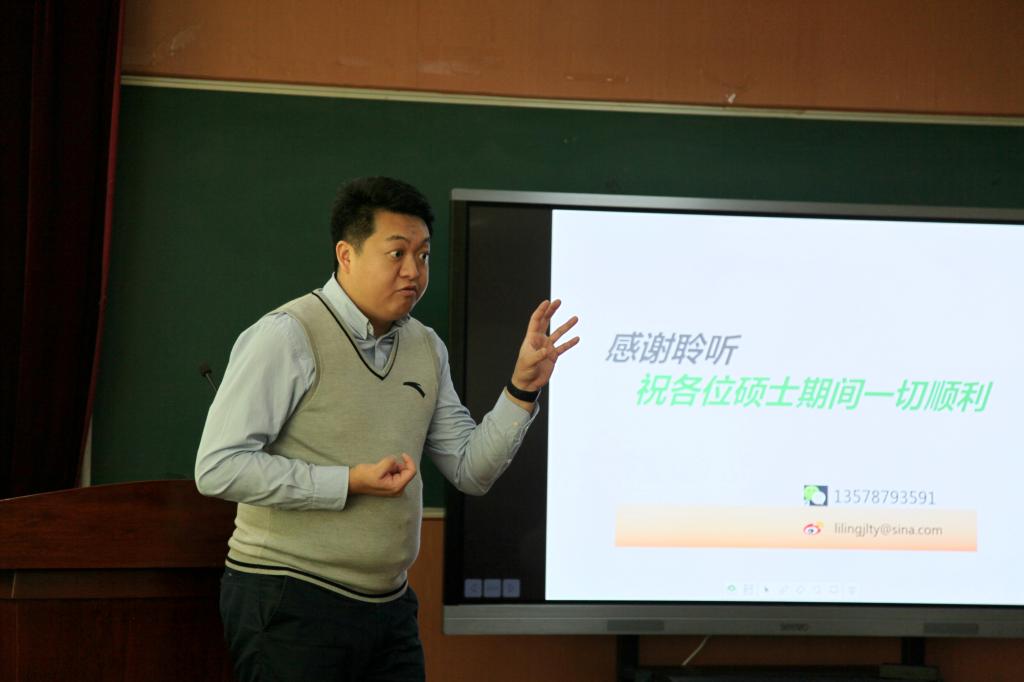 讲座上,李凌以亲和有趣的语言风格向同学们分享了论文写作经验,结合自身的亲身经历,教同学们如何过好自己的研究生生活。他主要从科研成果简介、科研体会、团队表型和团队建设四个方面作了分享。